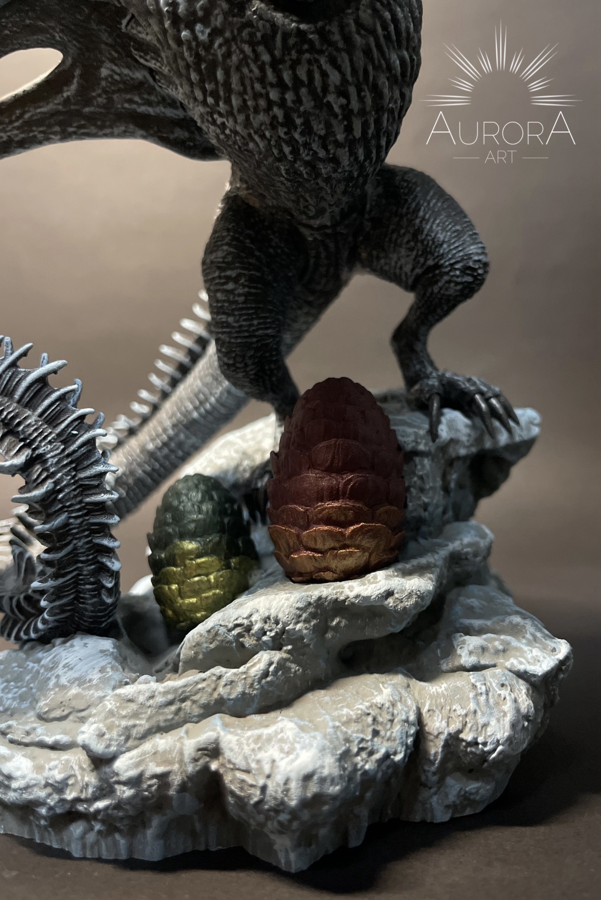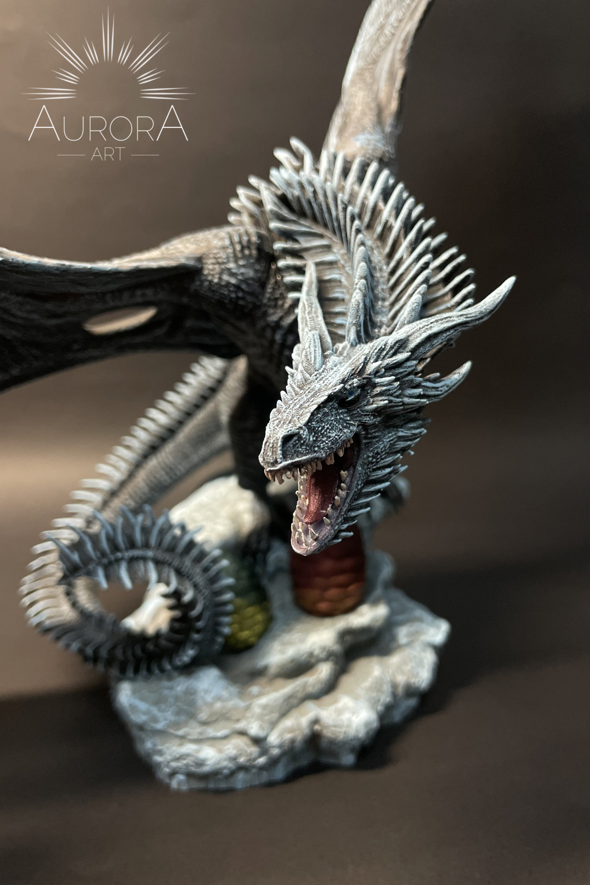 Koleksiyonunuzun en görkemli parçası olmaya aday bu dev ejderha figürü, sınırları zorlayan boyutları ve nefes kesen detaylarıyla Aurora Art tarafından sanatseverlere sunuluyor. Ejderha yumurtalarını koruyan bu heybetli canlı, hem işçiliği hem de duruşuyla gerçek bir başyapıt.