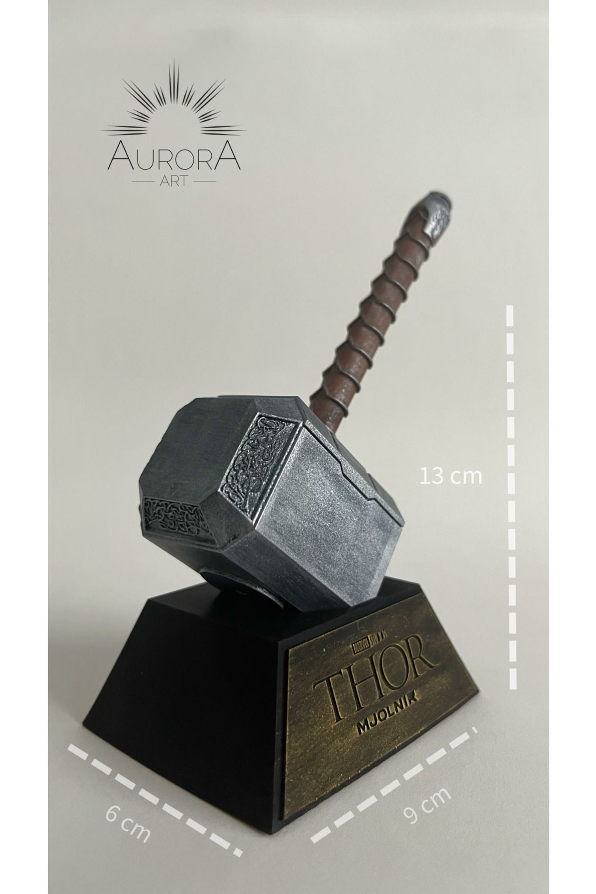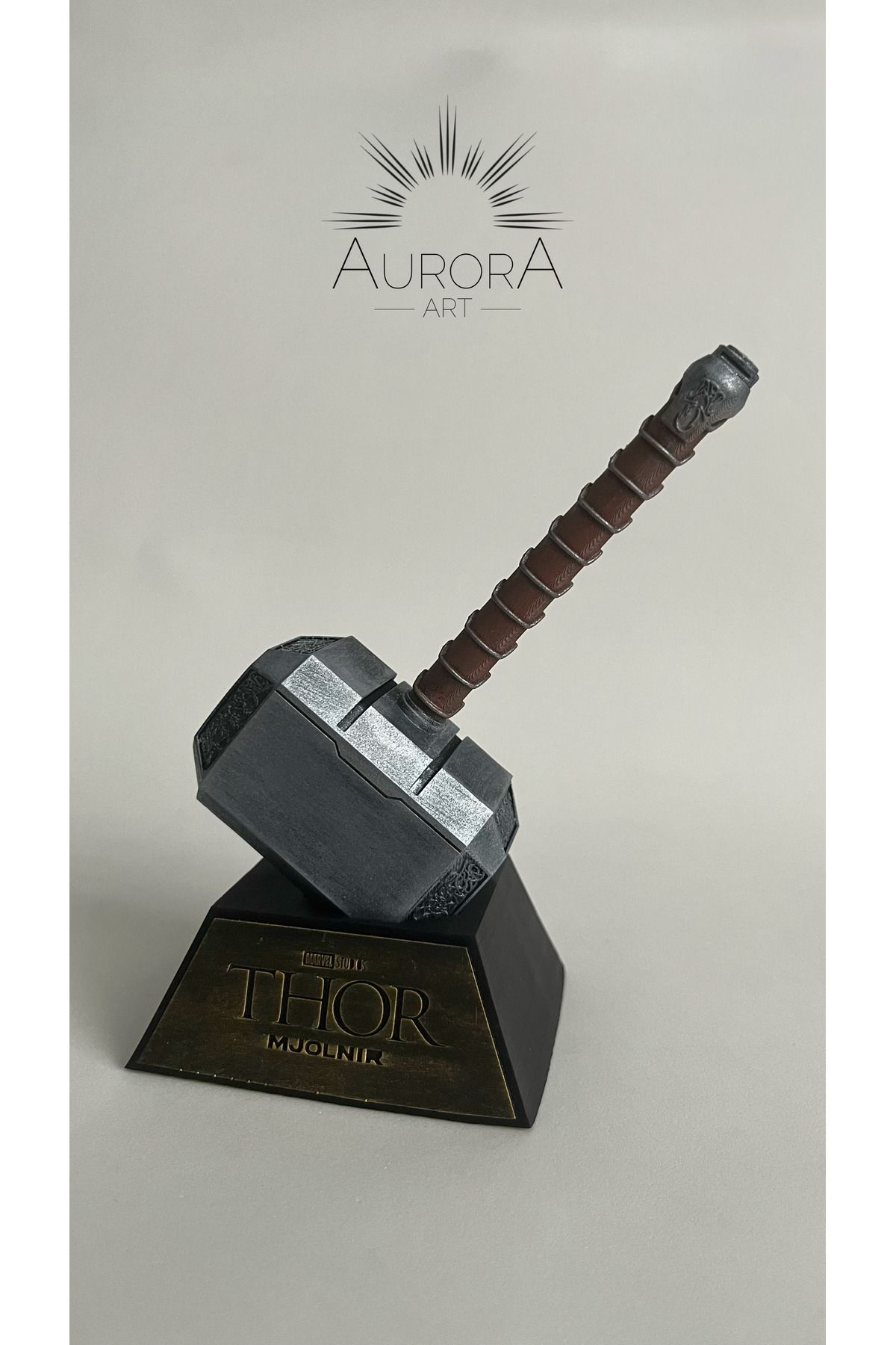 Bu özel tasarım koleksiyonluk Thor Mjolnir Çekiç figürü, yüksek kaliteli SLA (resin) 3D baskı teknolojisi ile üretilmiştir.; Tamamen el boyaması ile detaylandırılmış olup, Marvel evrenindeki ikonik Mjolnir çekiç tasarımından esinlenilerek özenle renklendirilmiştir.; Ürün Özellikleri: ✔ Malzeme: Yüksek çözünürlüklü reçine (SLA baskı) ✔ Boyutlar : • Yükseklik: 13 cm • Taban Genişlik: 9 cm • Taban Derinlik: 6 cm ✔ Renk: Çekiç kısmı metalik gri, sap kısmı eskitilmiş kahverengi ve taban kısmı siyah üzerine altın yazı şeklindedir.; ✔ Set İçeriği: 1 adet Mjolnir figürü ✔ Üretim Süreci: 3D baskı + el işçiliği boyama ✔ Taban Yazısı: Kabartma “THOR – MJOLNIR” yazısı Not: Her ürün özel olarak el boyaması olduğu için küçük renk farklılıkları olabilir.; Bu durum her figürü eşsiz ve benzersiz kılar.; 🚀 Koleksiyoncular ve hediye arayanlar için mükemmel bir seçenek! ⭐️ Ürün fotoğrafı ‘Aurora Art’ tarafından çekilmiştir.