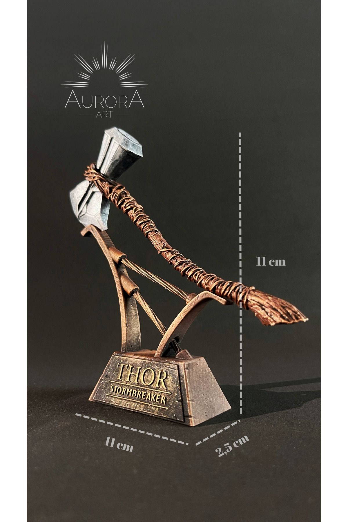 Ürünler ‘Aurora Art’ tarafından fotoğraflanmıştır.; Fotoğraftaki ürünler gönderilecektir.; Bu özel tasarım Stormbreaker figürü, yüksek kaliteli SLA (resin) 3D baskı teknolojisi ile üretilmiş olup, tamamen el boyaması ile detaylandırılmıştır.; – Marvel evrenindeki ikonik Stormbreaker tasarımından esinlenerek, özgün bir koleksiyon parçası haline getirilmiştir.; Ürün Özellikleri: • Malzeme: Yüksek çözünürlüklü reçine (SLA baskı) • Boyutlar: Yükseklik: 11 cm Genişlik: 11 cm Derinlik: 2.5 cm • Renk: Çekiç başlığı: Metalik gri Sap kısmı: Eskitilmiş kahverengi Taban: Siyah üzerine altın kabartma “THOR – STORMBREAKER” yazılı • Set İçeriği: • 1 adet Stormbreaker figürü • Üretim Süreci: • 3D baskı + el işçiliği boyama Not: Tüm ürünler el boyamasıyla hazırlandığından, küçük renk farklılıkları olabilir.; Bu durum her figürü benzersiz ve eşsiz kılar.; 🚀 Koleksiyoncular ve hediye arayanlar için mükemmel bir seçenek!
